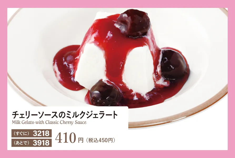 甘酸っぱいチェリーソースの味わいが濃厚なミルクのコクを引き立てます。