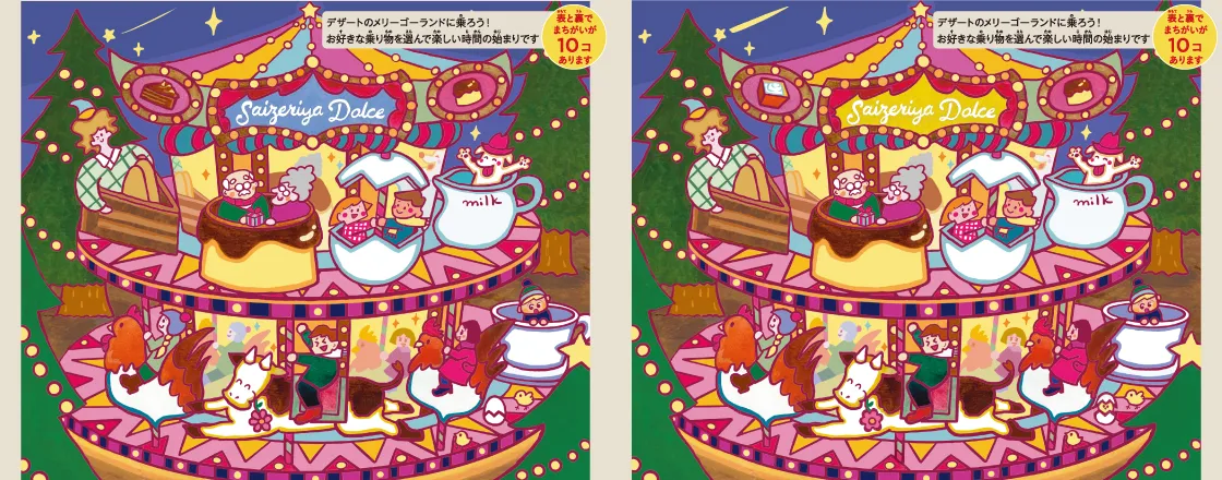 サイゼリヤの「間違い探し」をご紹介します。ご来店の際は、ぜひチャレンジしてみてください。