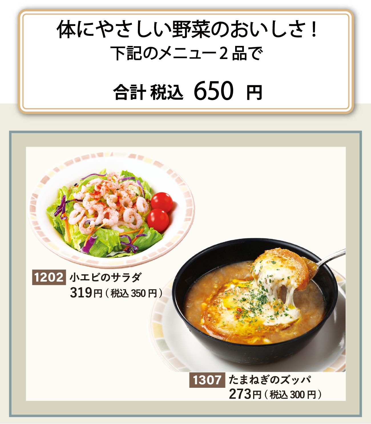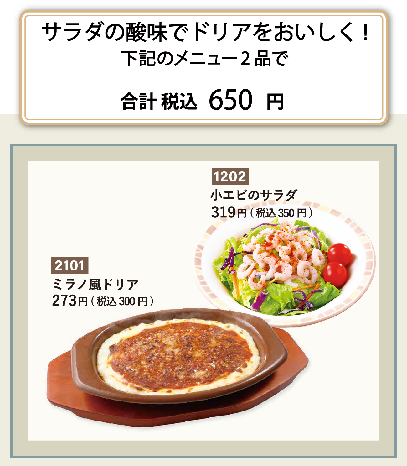 ドリアや肉料理に野菜料理を組み合わせてどうぞ。