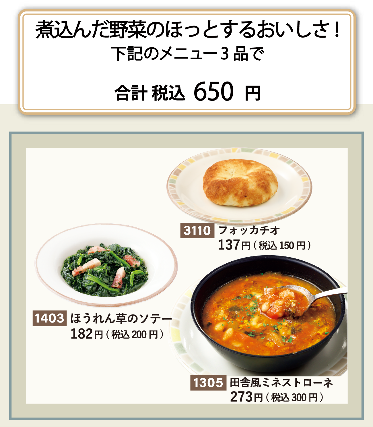 サイゼリヤにはイタリアの家庭料理に学んだ野菜をたっぷり摂れるスープや野菜料理が色々あります。