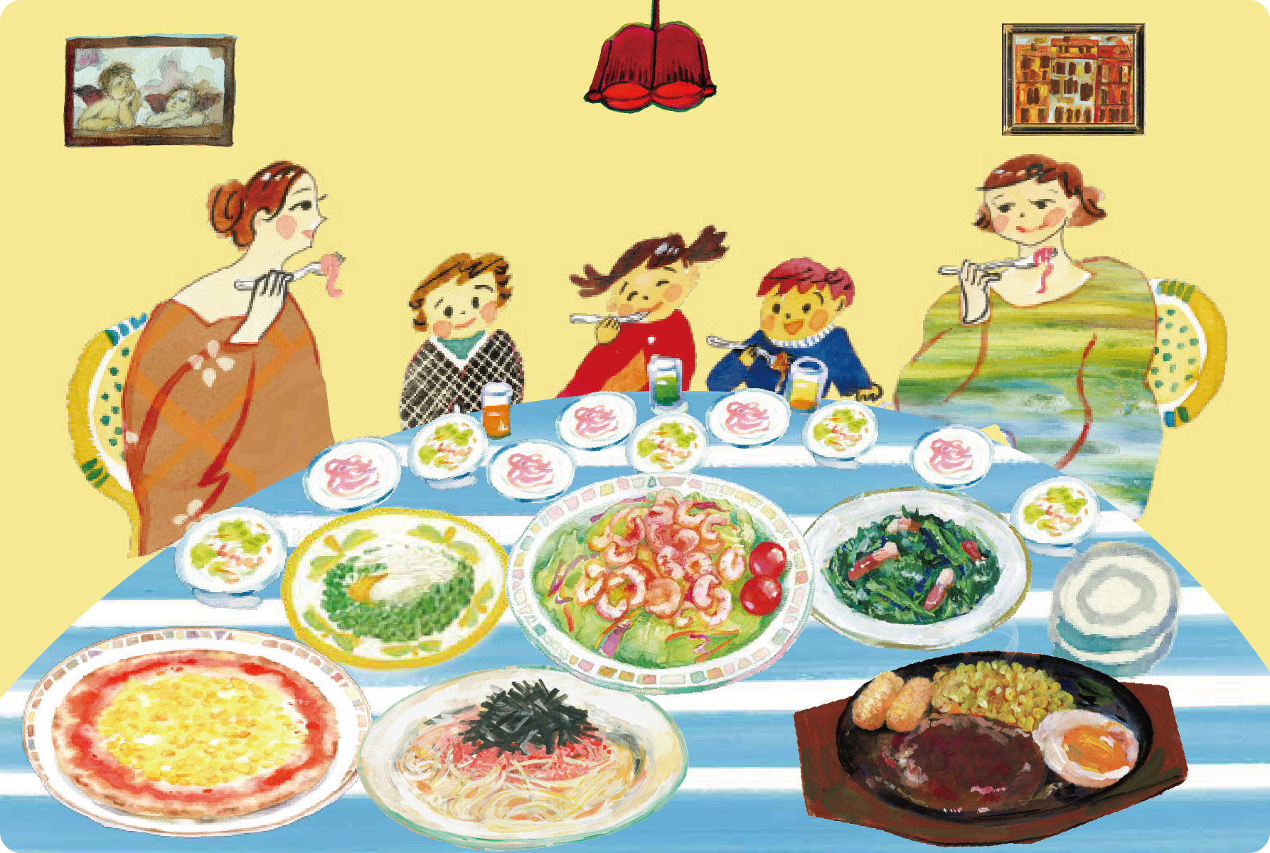イタリアの家庭では、子どもも大人も同じ料理を一緒に楽しみます。