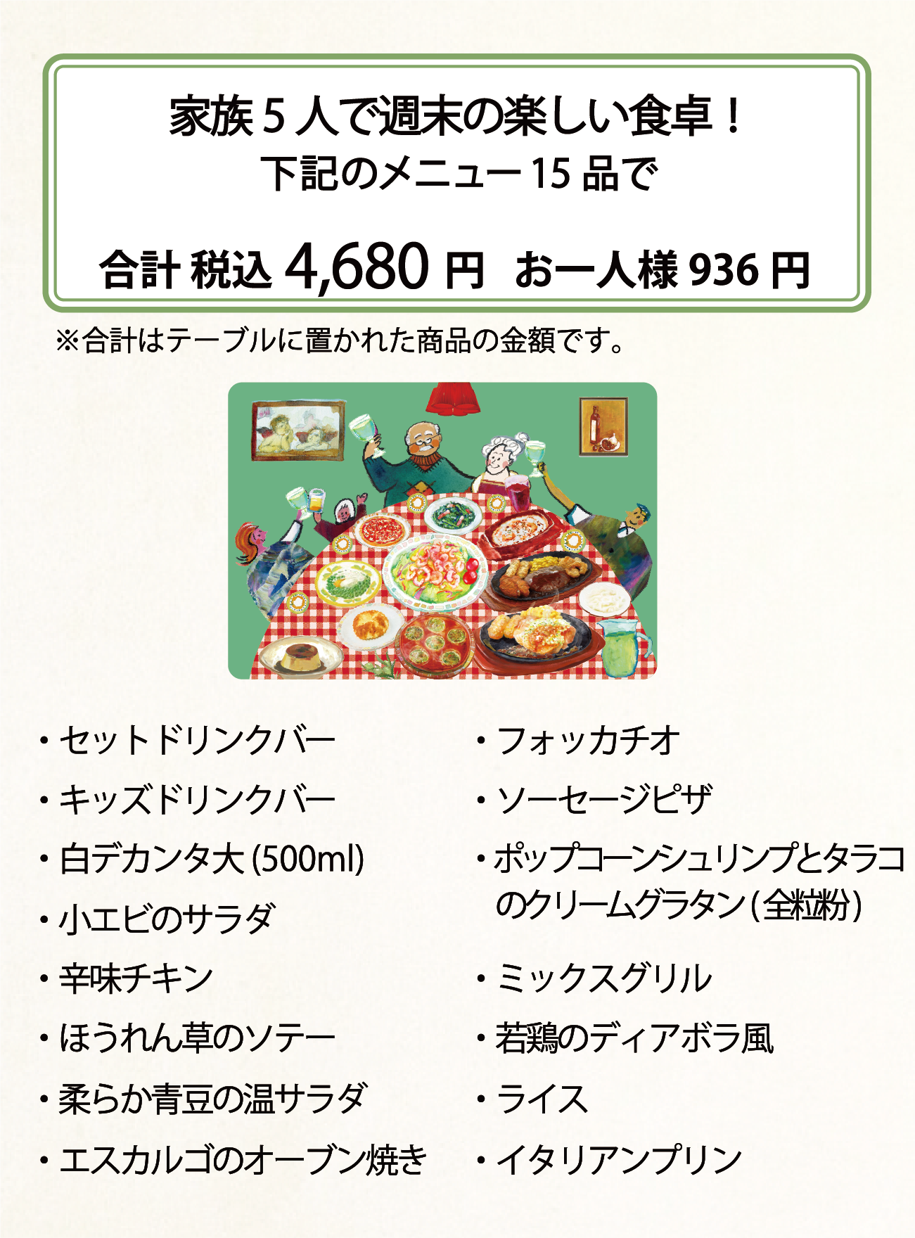 週末は両親も子供も好きなサイゼリヤで色々な料理をシェアして楽しみませんか?