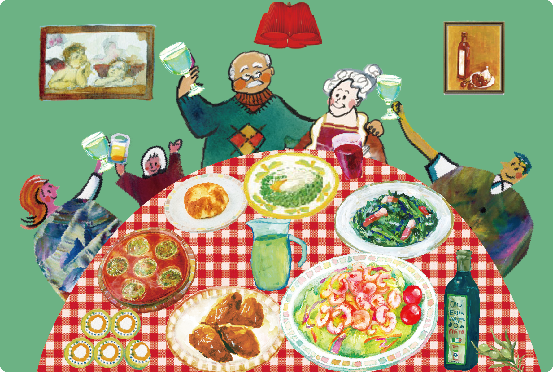 まずはお飲み物、最初は家族で健康を祝して乾杯 “Salute(サルーテ)”!