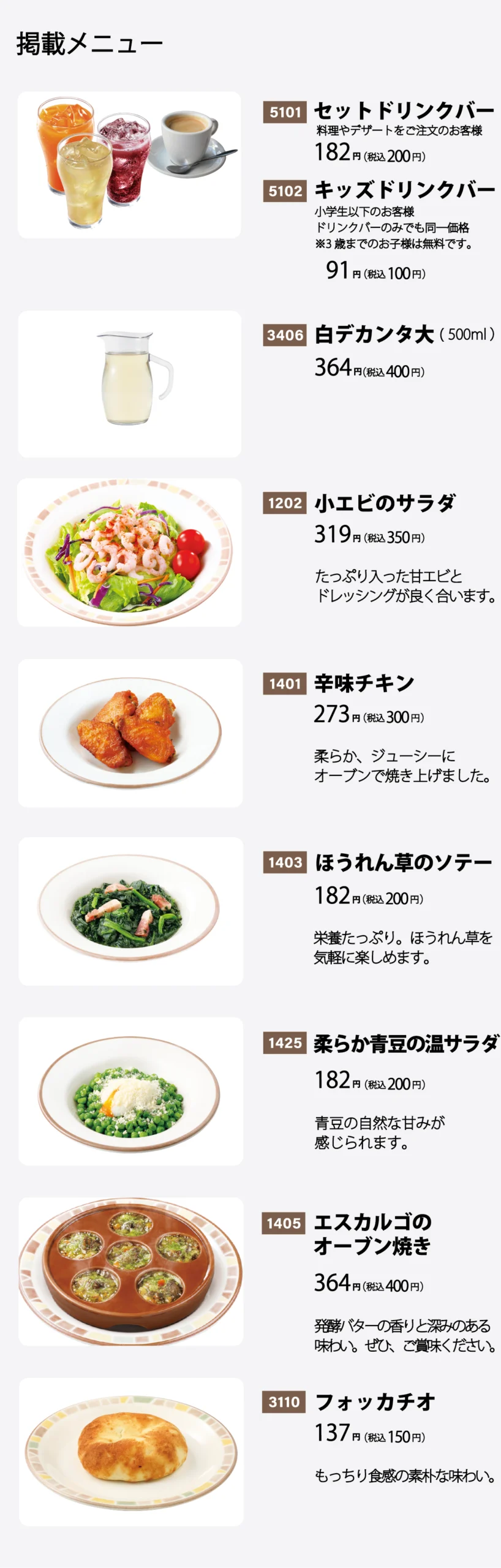 ドリンクバー、ワインなど、お好きなものを選んでください。