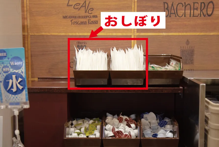 紙製のおしぼりをドリンクカウンターにご用意しています。