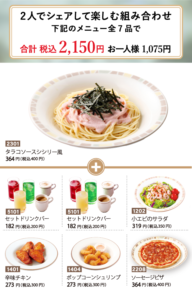 タラコの旨みと生クリームのコクがおいしい。サイゼリヤで一番人気のパスタです 。