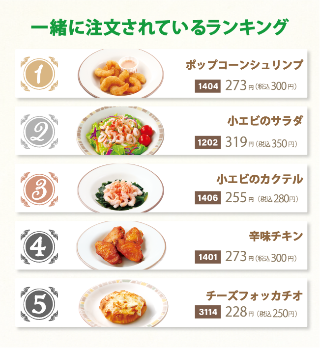 まろやかなソースがよく絡み、さらにアクセントの刻み海苔で、最後までおいしく食べられます。お子様から大人まで幅広いお客様に好まれ、サイゼリヤのパスタメニューの中で不動の人気を誇るスパゲッティです。