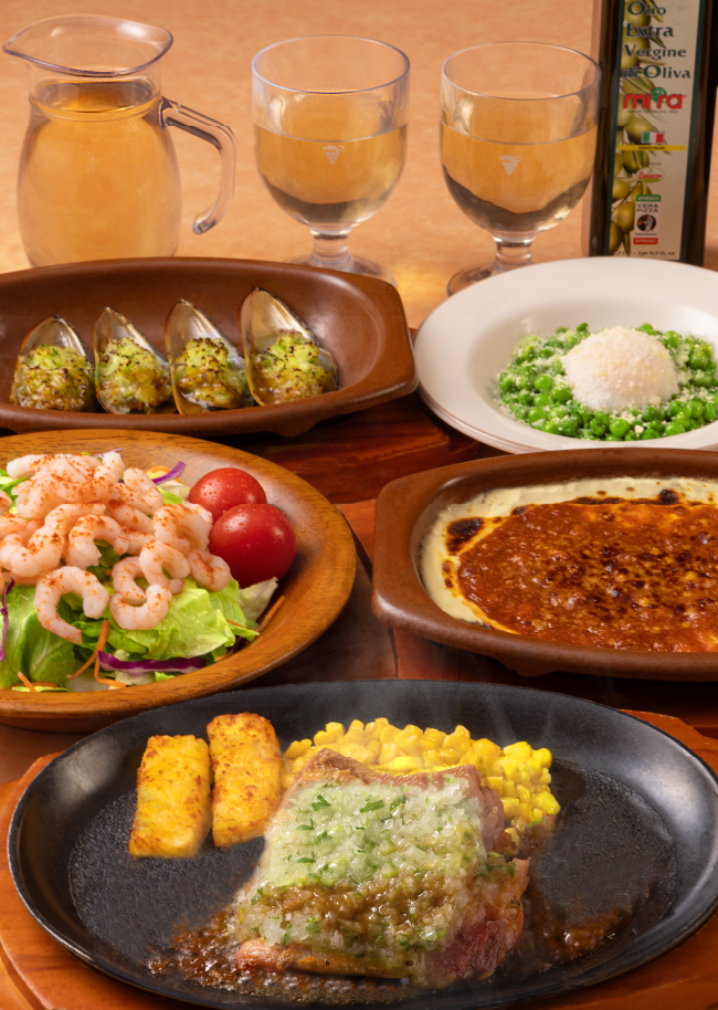 肉厚の鶏モモ肉をジューシーに焼き上げ、自慢の野菜ソースをのせたサイゼリヤ特製の肉料理です。